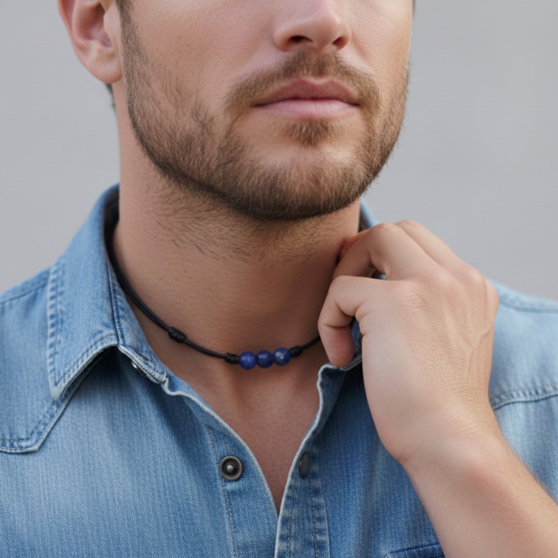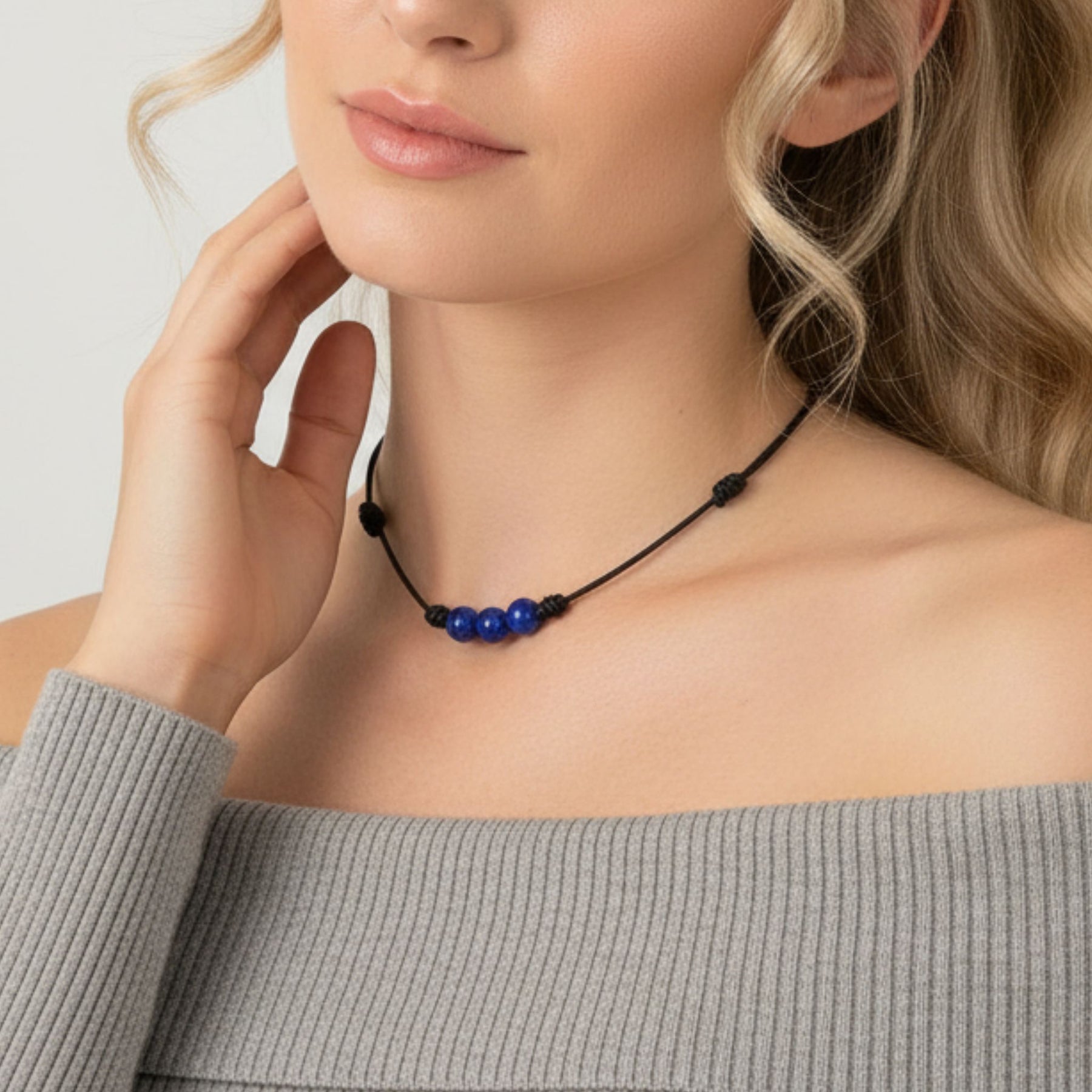 A minimal choker accented with lapis lazuli beads for a rich, everyday look. Finished with an adjustable cord for easy wear and versatile layering.
