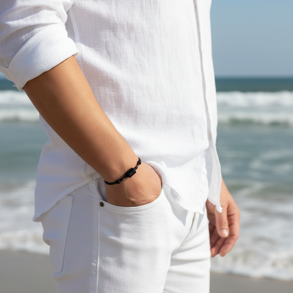 Harness protection and inner strength with this Black Obsidian Cylinder Bracelet. Made with powerful black obsidian cylinder beads and an adjustable wax nylon cord, this boho surfer bracelet is waterproof and built to last. Ideal for everyday wear, it merges high-quality materials with outstanding craftsmanship for a sleek and durable accessory.