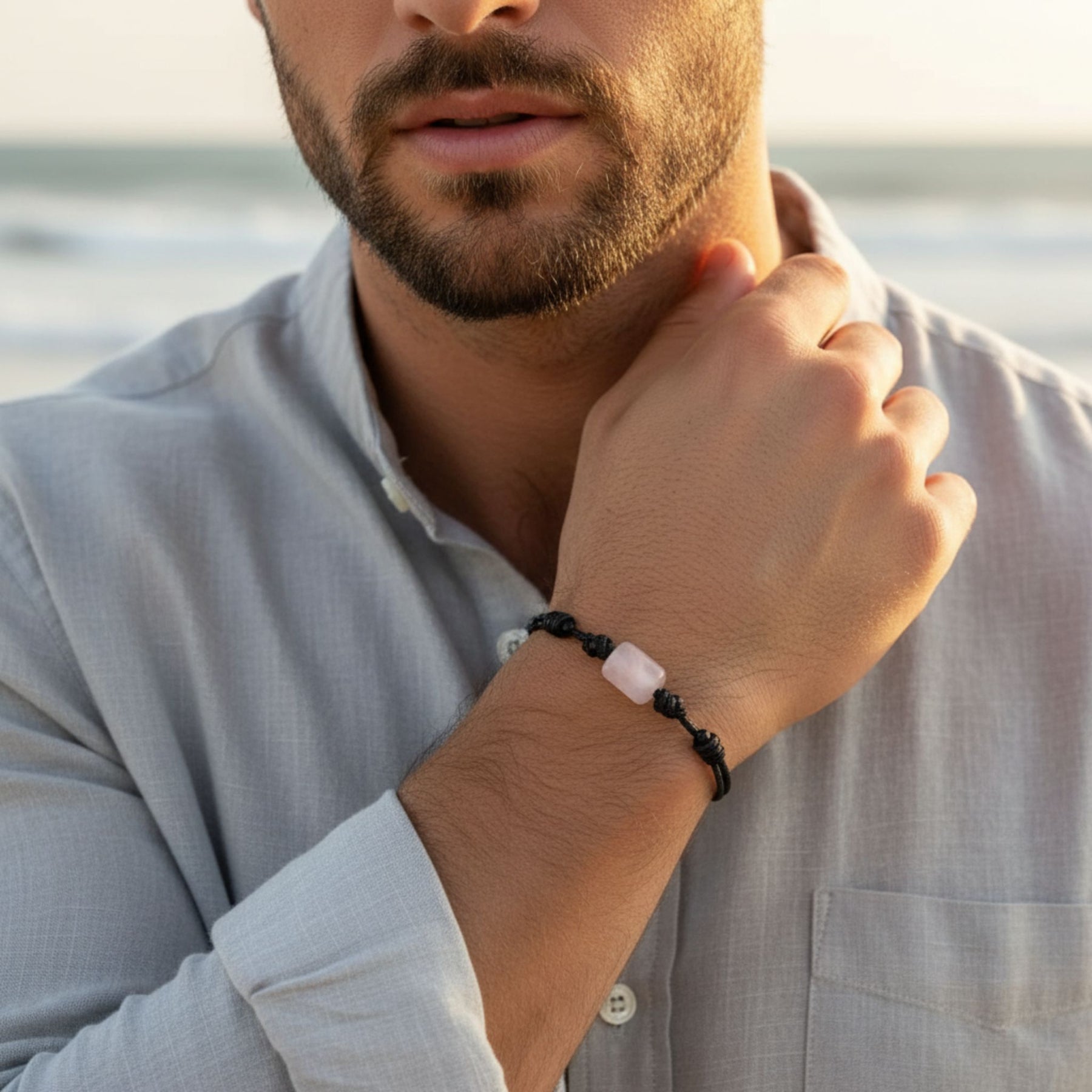 Experience harmony and balance with our Unisex Rose Quartz Cylinder Bracelet. This elegant piece features cylinders of rose quartz, known for promoting emotional healing and inner peace. The adjustable, water-resistant waxed nylon cord makes it a versatile choice for both men and women.