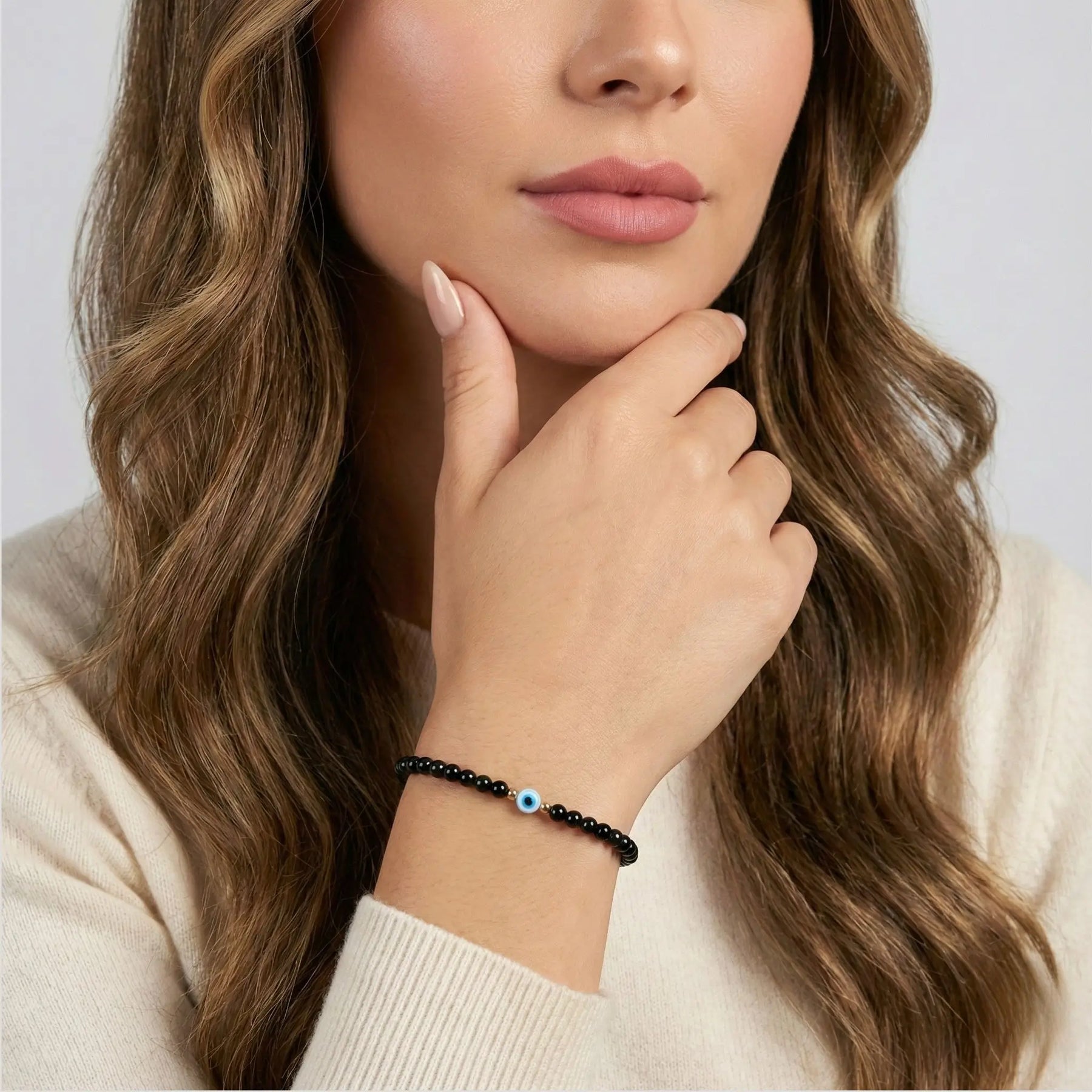 14K Gold Black Tourmaline & Evil Eye Bracelet