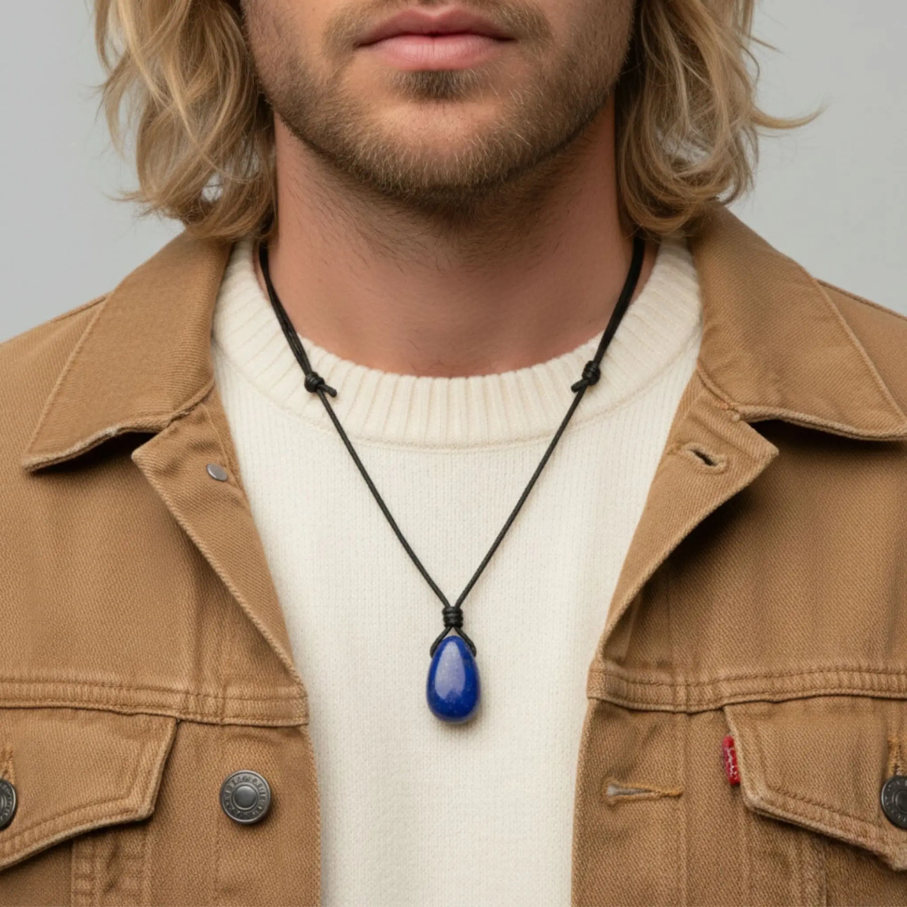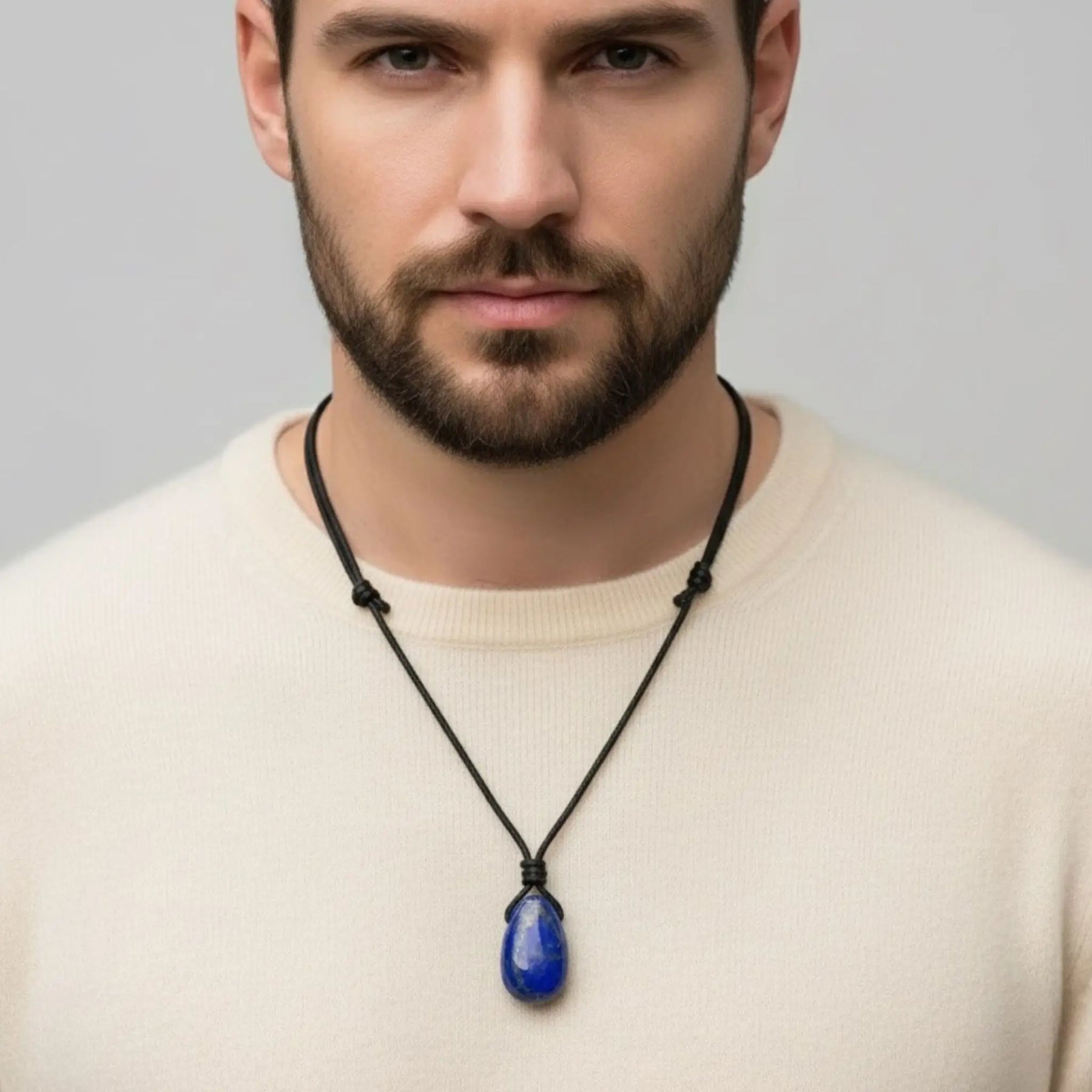 The unisex look pairs easily with knits, shirts or jackets and can be worn solo or layered with other pieces. In many traditions, lapis lazuli is associated with wisdom, truth and inner reflection, making this a simple gemstone accent for relaxed, meaningful style.