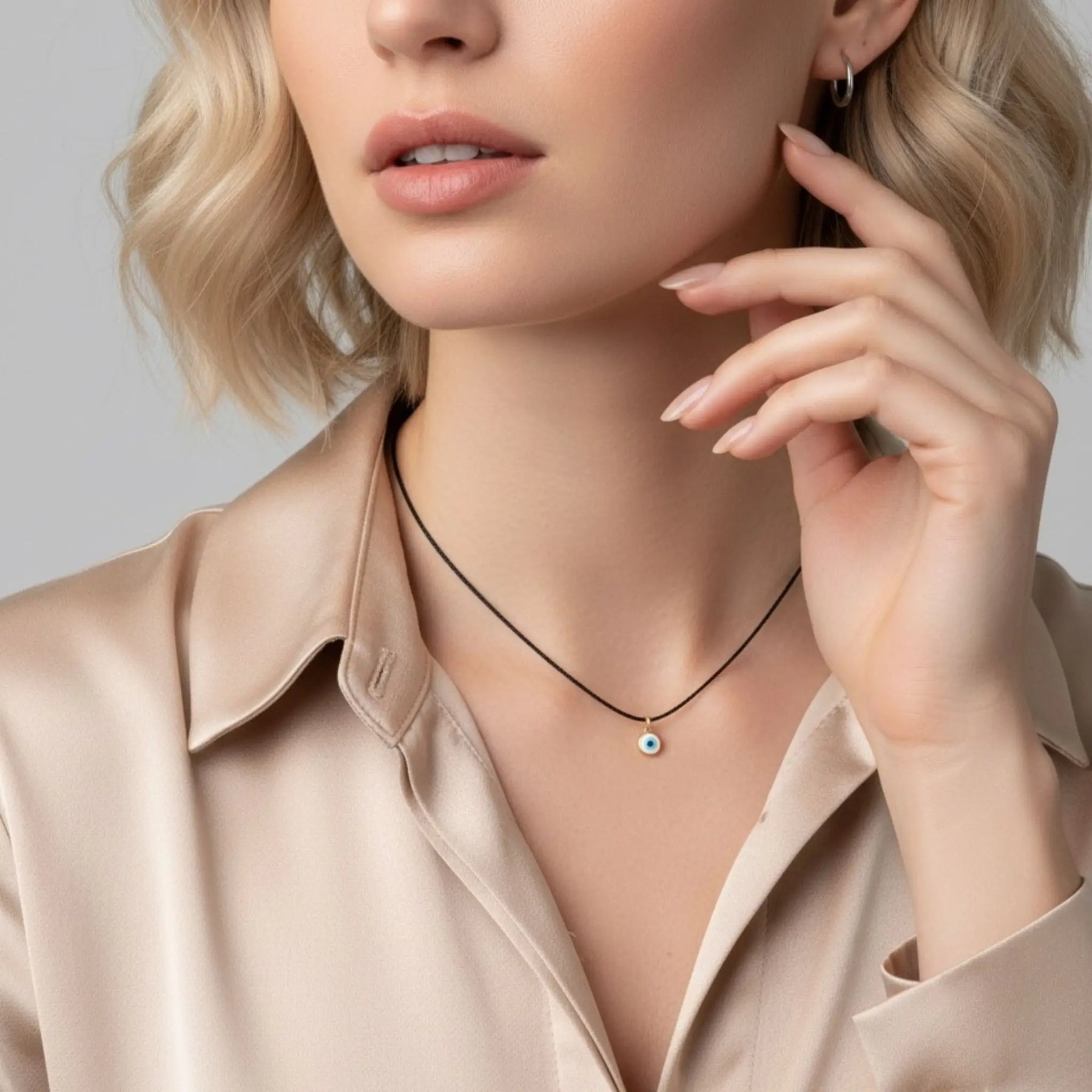 Gold Turkish Evil Eye Silk Choker – Nazar Protection Talisman