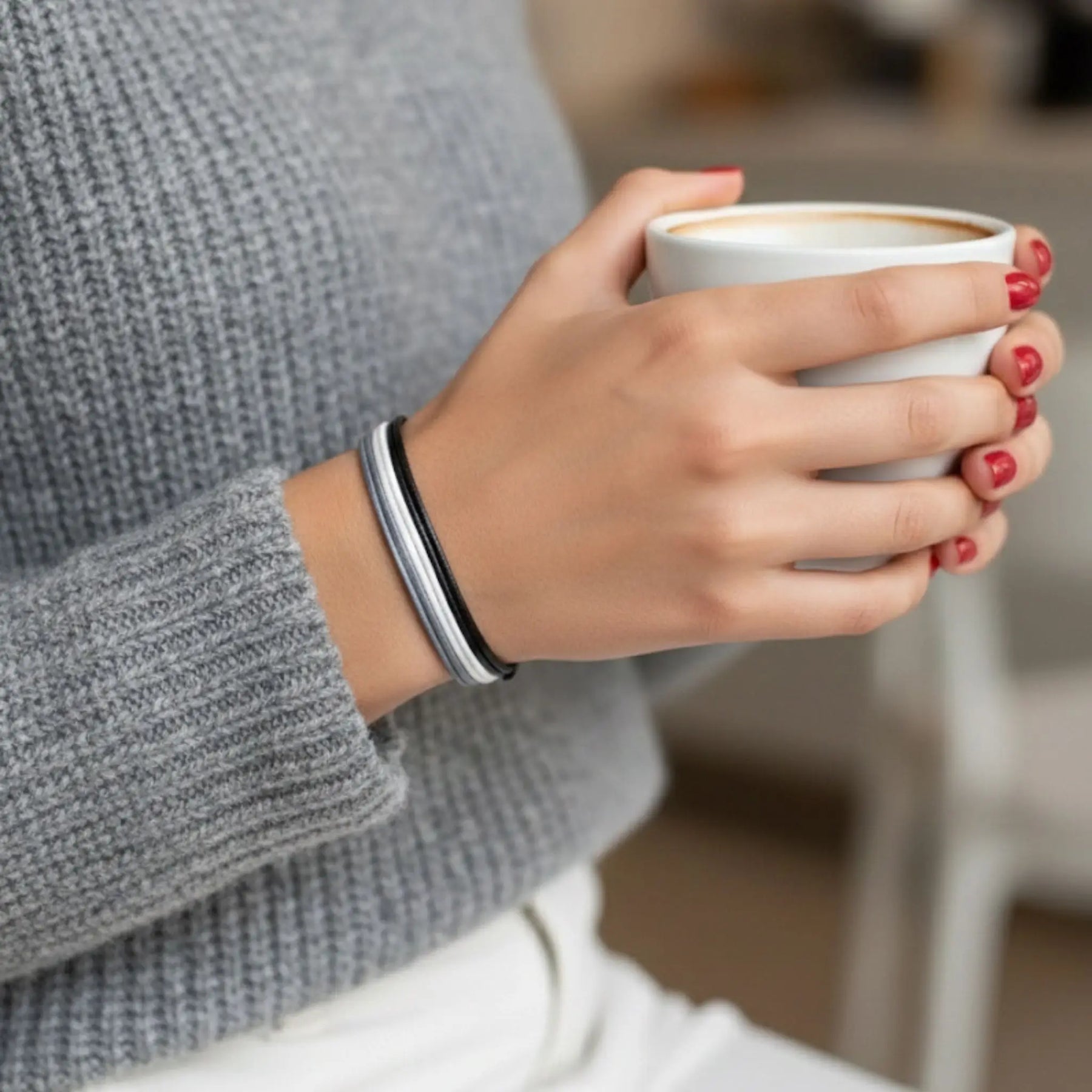 Modeled Black, White & Gray Cord Bracelet Set - Perfect for Minimalist Elegance - Luck trings