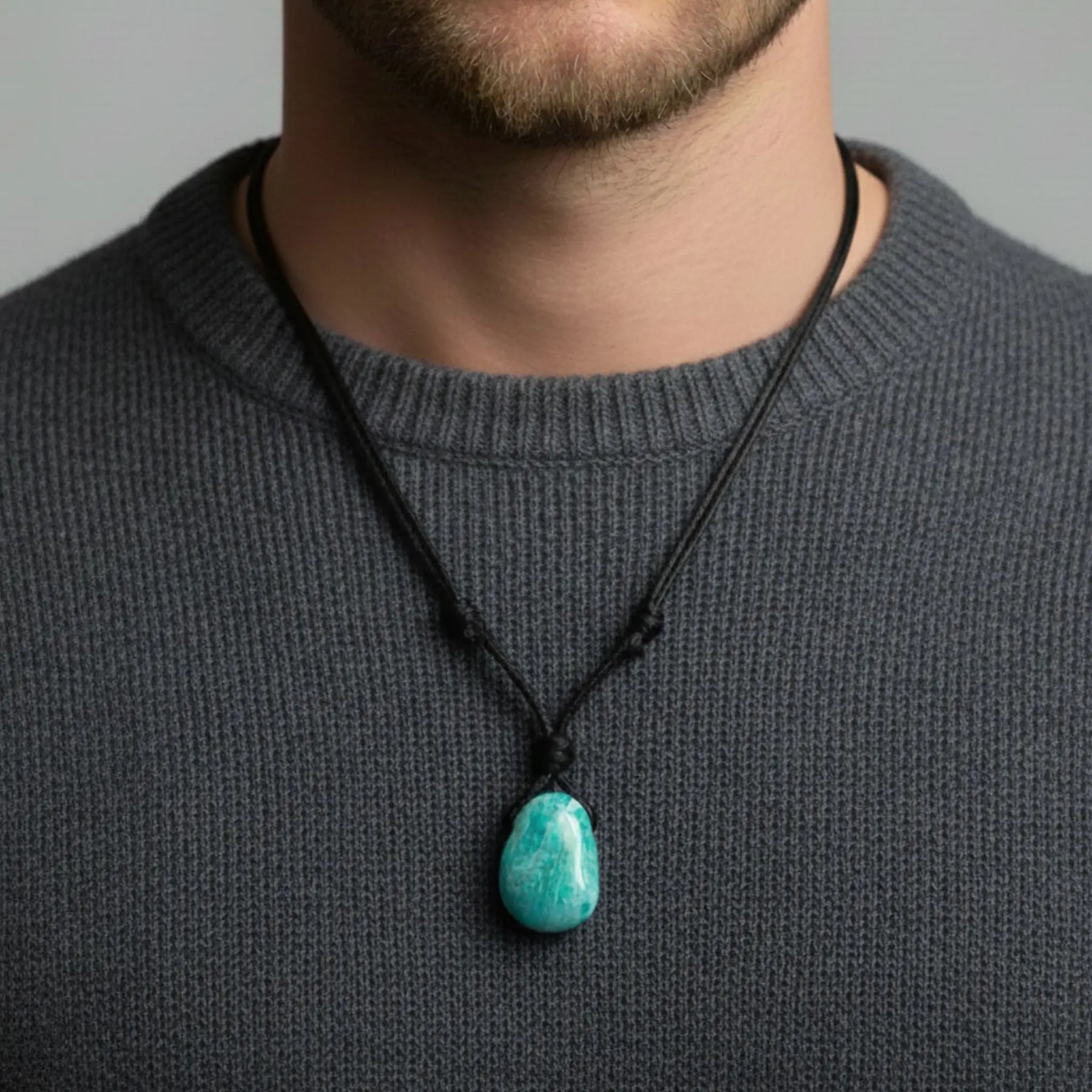 Embrace the calming energy of amazonite with this adjustable necklace. Known as the stone of courage and truth, amazonite soothes anxiety and promotes harmony.